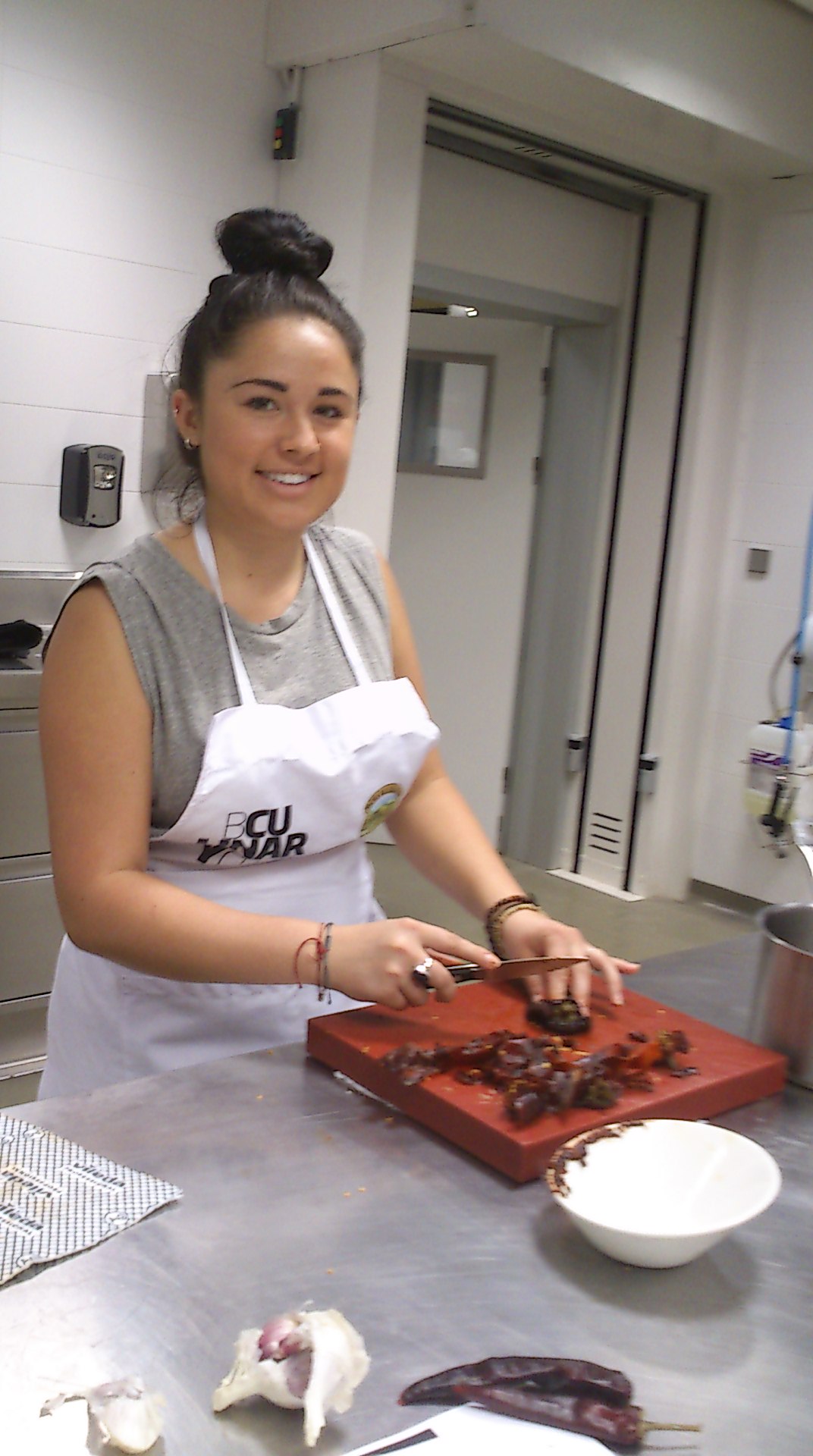 A productive night it was in our cozy kitchen in the BCulinary Club at the Basque Culinary Center. Our dishes — Riojan-style Potatoes with Chorizo and Pork Ribs, Salt Cod in Pil Pil Sauce with Piquillo Peppers, and Pears in Wine — were a comforting antidote to the day’s orange-alert level winds and rains.