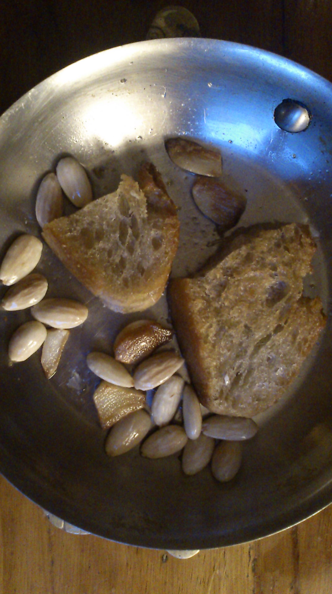 Secondly, the potaje gets its body through its majado (not to be confused with the Peruvian dish majado) — a beautiful mash-up of toasted bread, garlic, almonds, cooking liquid and vinegar. We’ll explore the different results we can achieve by creating our majado both by hand, in a mortar and pestle, and by using a blender.